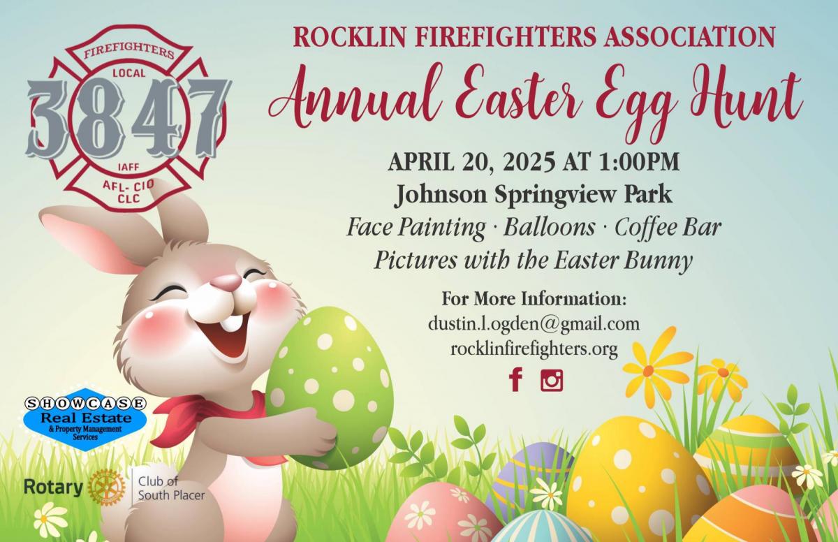 Join us for the annual Easter Egg Hunt, hosted by the Rocklin Firefighters Association, at Johnson Springview Park!