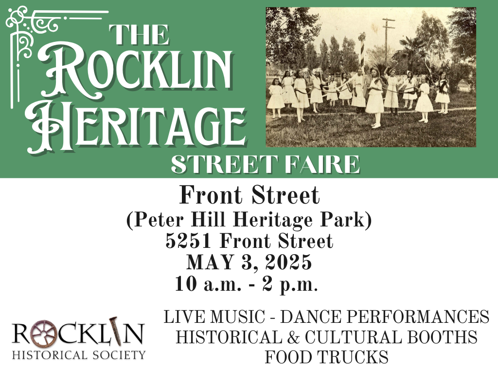 Join us at the Rocklin Heritage Street Faire on Front Street for a day packed with excitement and celebration of our town’s rich history and vibrant culture!
