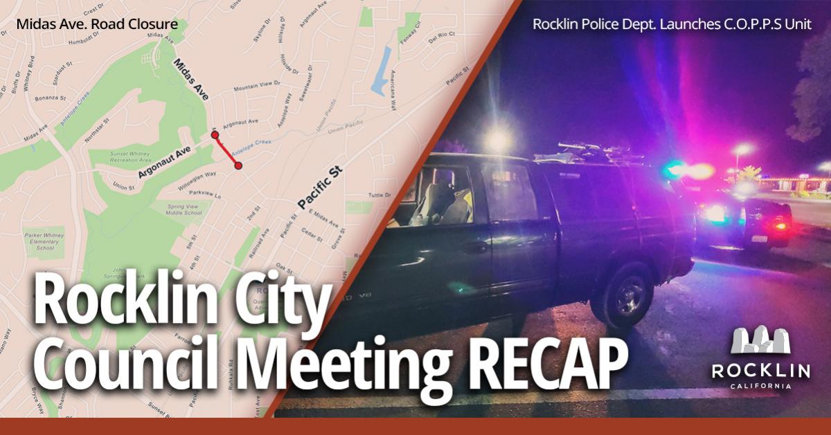 Midas Ave. Closure; C.O.P.P.S Program; Rocklin Arts Commission