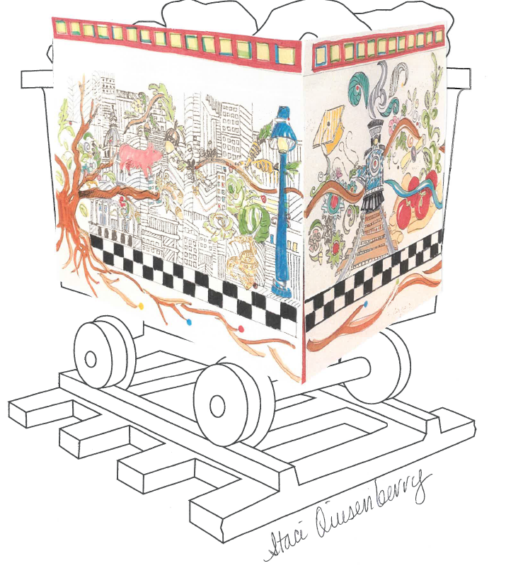 Artist Bio: I am a resident and artist of Rocklin. I own Gallery IQ on the corner of Midas and Pacific, a small art and teaching gallery. I have also owned my own graphic design business and art together here in Rocklin. I have always responded on an emotional level to color and texture since I was a wee girl, and it has emerged as my “style” in the years I have been painting. It is this style I want to bring to the ore cart design.